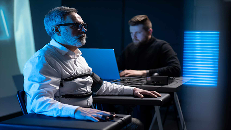 The polygraph instrument used, is a modern Lafayette computerised system which is calibrated before and during testing to confirm the instruments functionality. The instrument uses various sensors, placed on the person’s body to record select physiological activities.